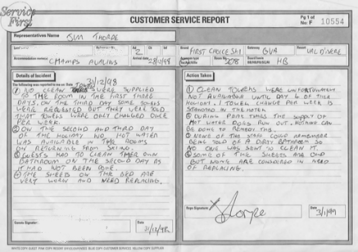 Hopefully it will save you any disappointment and may enable you to negotiate better treatment than we got. The information on these pages is purely personal observation and has been reported back to First Choice for comment.